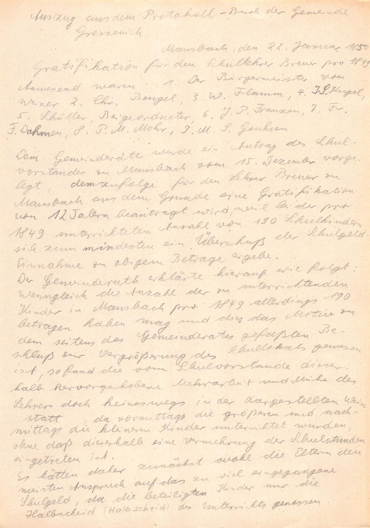 Eine besondere Information betrifft die Bezahlung: Im Jahr 1849 erhielt ein Lehrer ein Jahresgehalt von 12 Thalern. Diese Angabe stammt aus den Gratifikationsaufzeichnungen von Lehrer Breuer aus dem Jahr 1850.